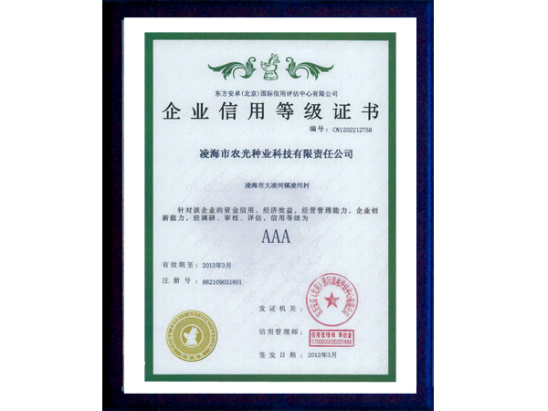 〖信用證書(shū)登記AAA〗